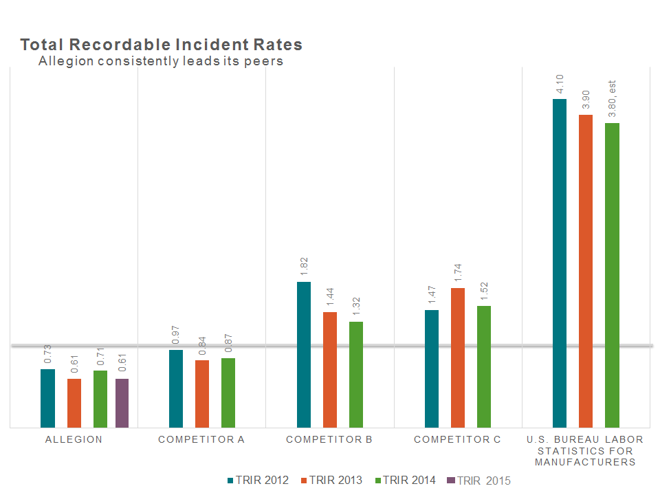 Allegion also has a relentless focus on safety. While we are never satisfied, we are proud that Allegion enjoys industry-leading results.